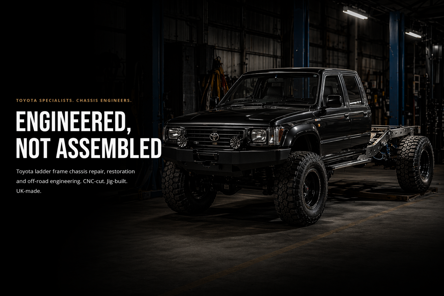 We build Toyota's; Hilux chassis repair, restoration and off-road engineering — CNC-cut, jig-built and designed for long-term durability.