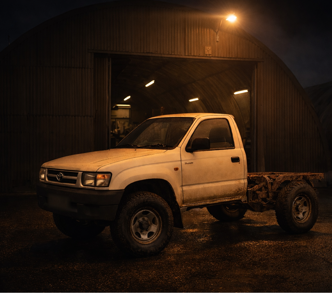 We design and manufacture CNC-cut chassis repair sections, carry out full restorations, and build high-end restomod Toyota 4x4s including Hilux and Surf platforms.